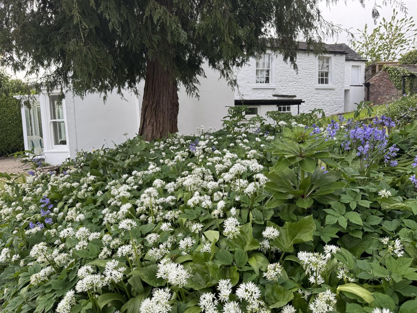 There is a large garden (extending to approximately half an acre) to the front of the house which is informal and generally laid to lawn - there is an abundance of spring flowers including a huge variety of daffodils, along with drifts of snowdrops and crocus and summer flowers including bluebells, wild garlic, forget-me-nots and lilies in the summer. Beyond is a small orchard (with a variety of late and early eating apples along with pear and quince trees) and space for growing vegetables and to the second side of the drive is a further lawn with mature trees etc.