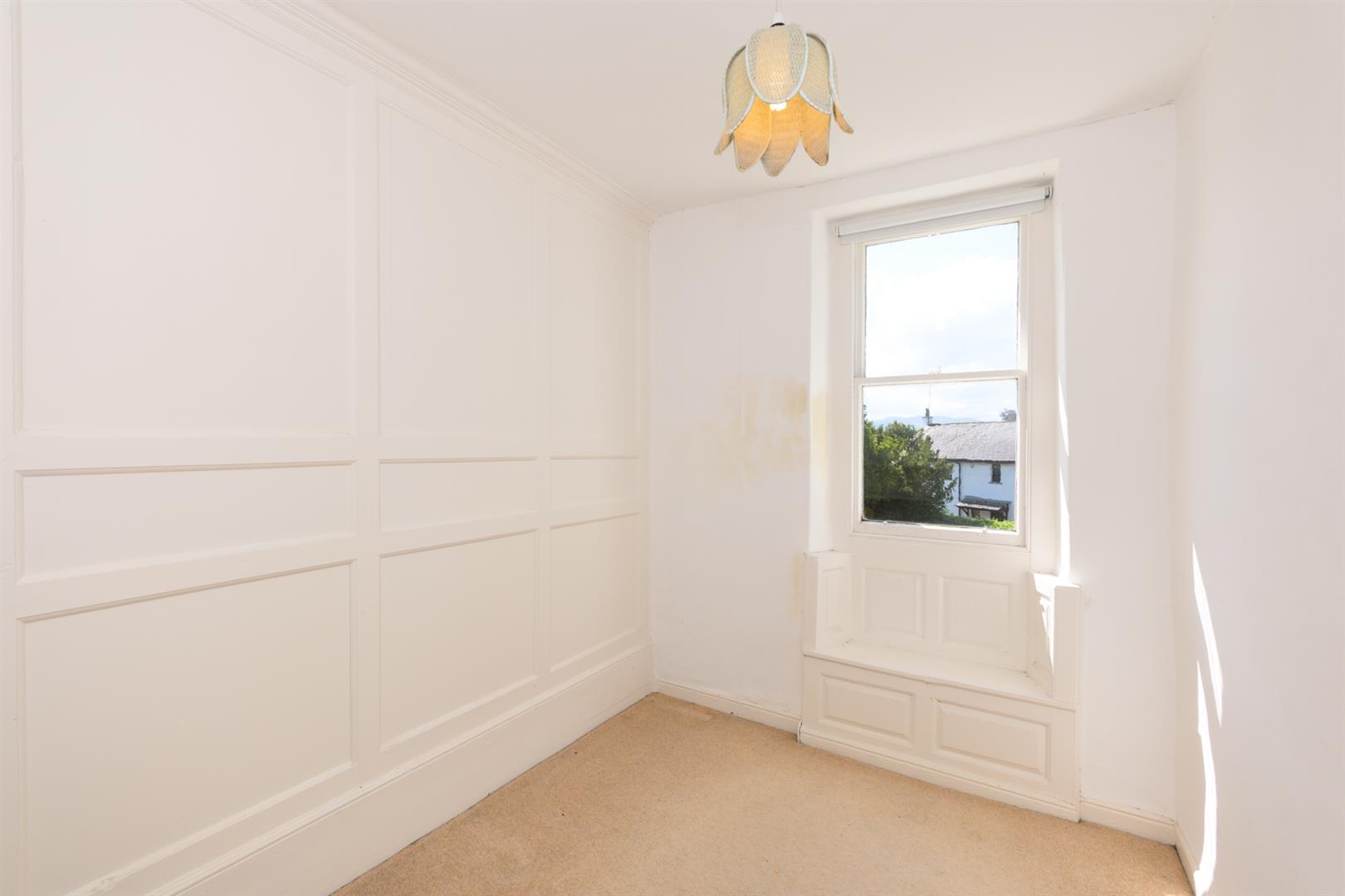 A spacious single room to the front with the view of the fells, painted wood panelling, wall mounted shelving and access into the loft.