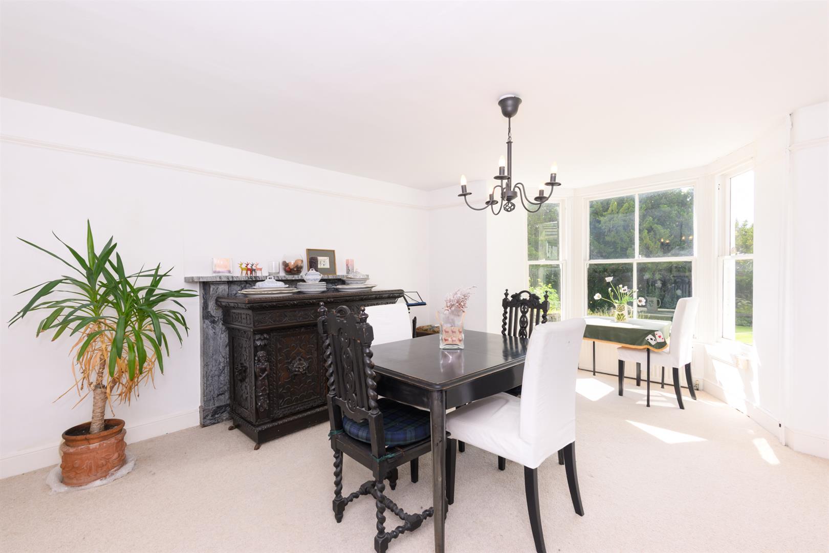 A sunny, bright room with views over the terrace and garden. With bay window, telephone point and picture rail. Fireplace with tiled surround and marble mantelpiece over.