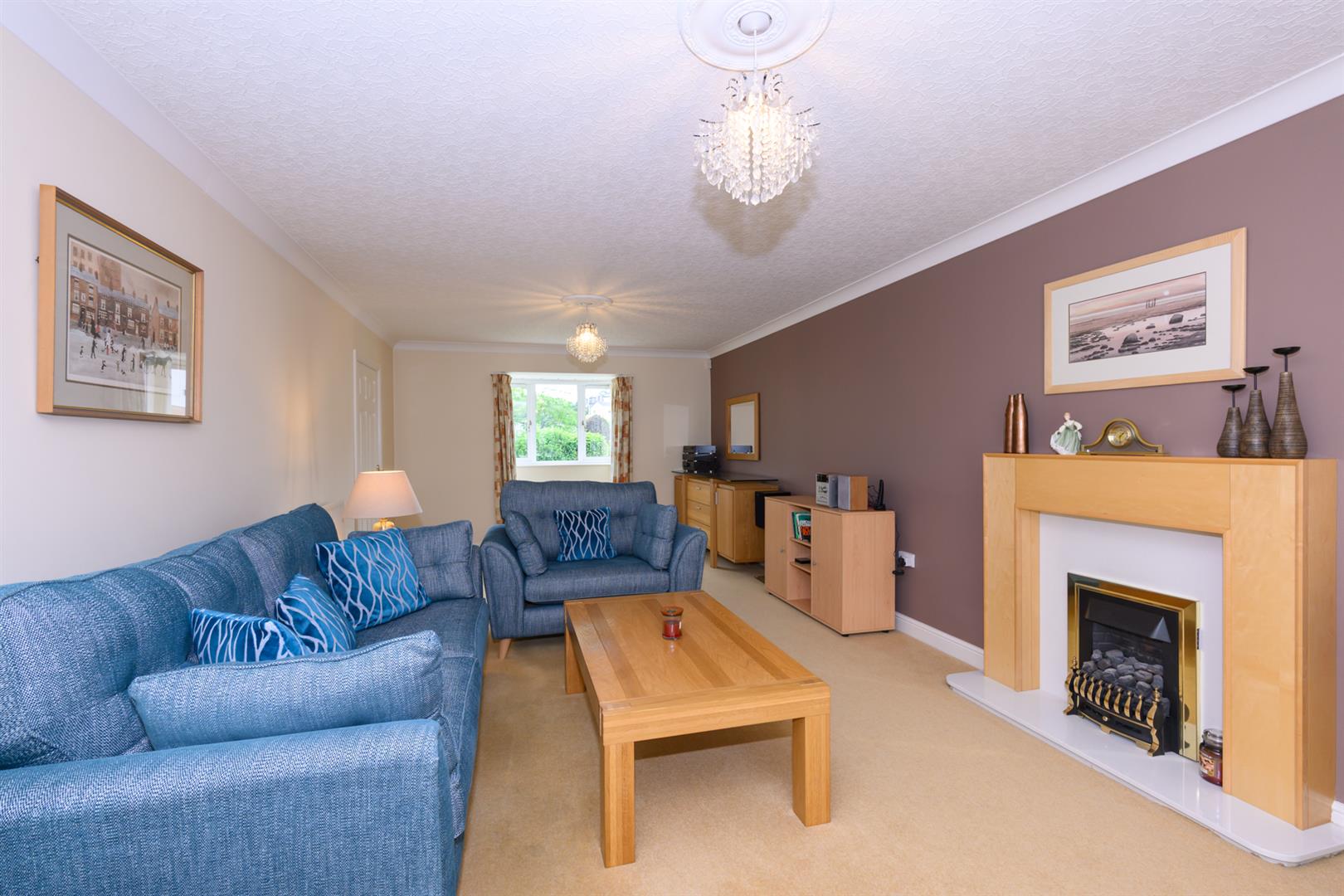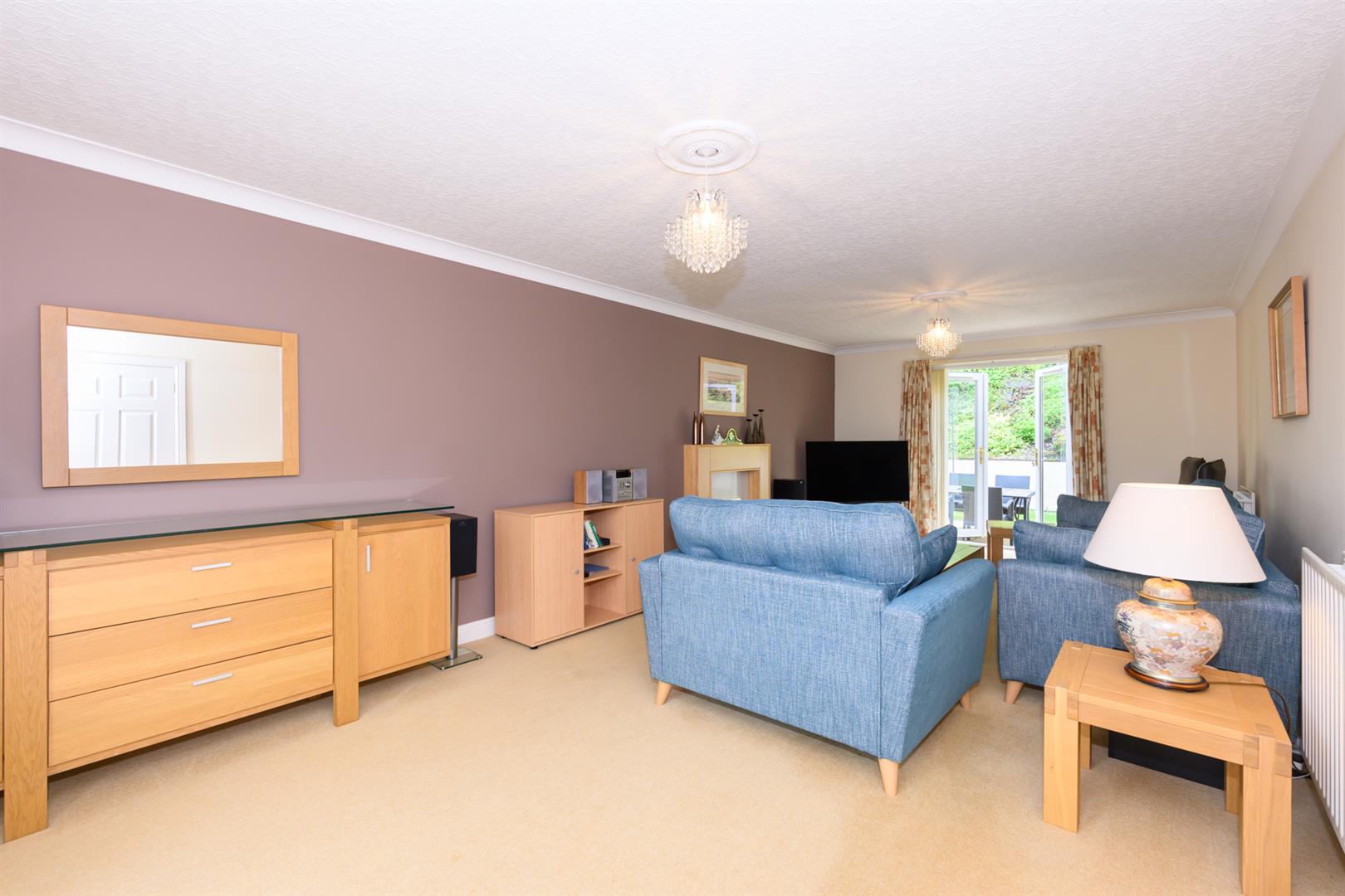 Lovely light and airy room with a square bay window to the front and french doors to the rear, 2 ceiling roses, coving, television point and gas coal effect gas fire in brass frame on cream hearth with matching oak veneer surround with mantelpiece over.