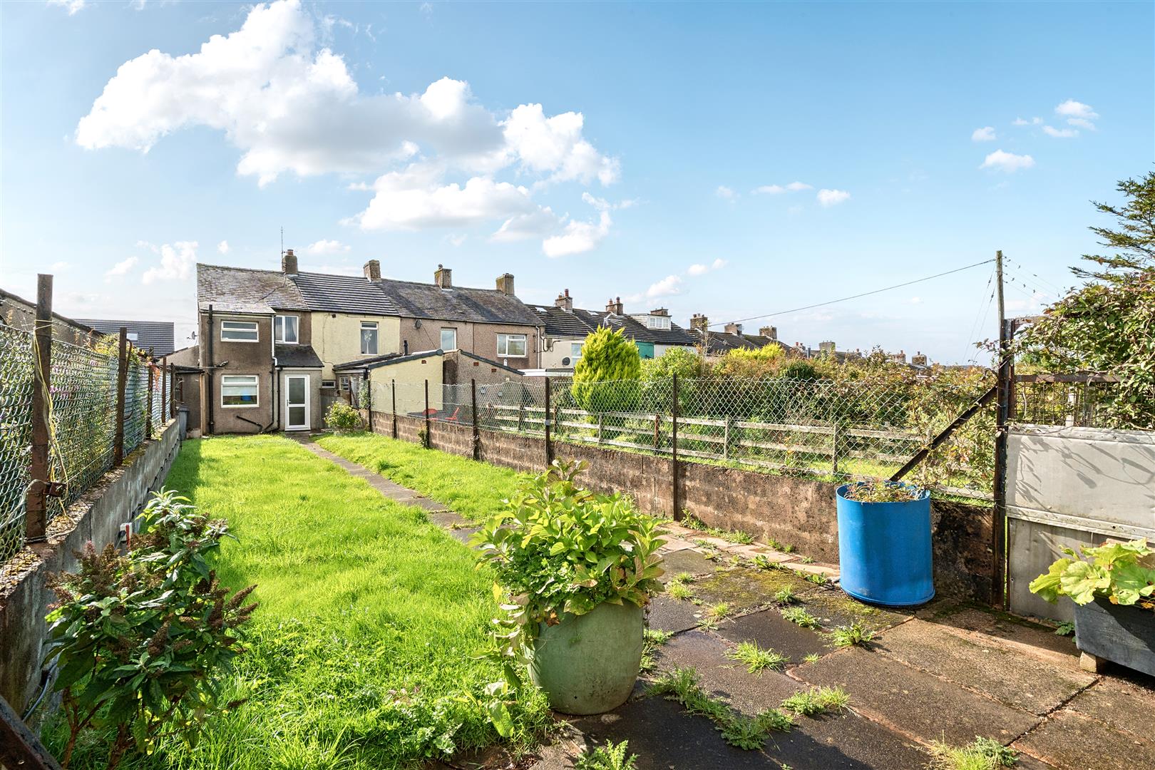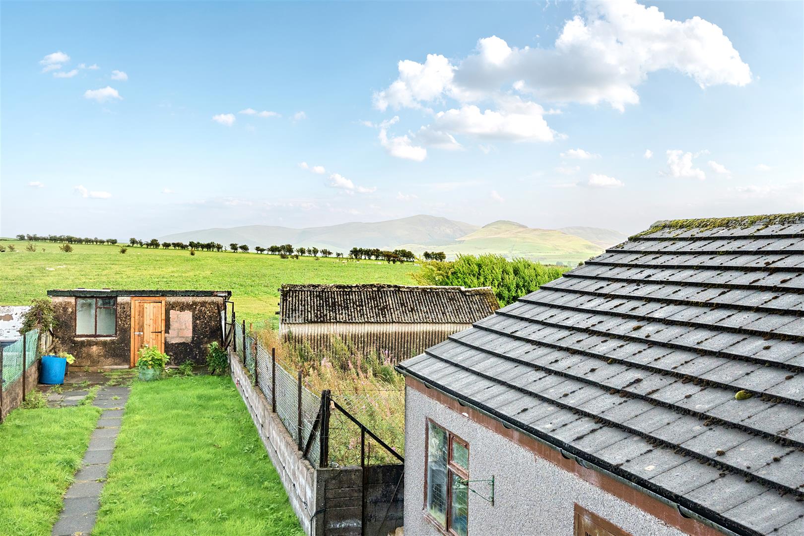 Generous, fully secure rear garden, larger than most others which is mainly laid to lawn with breathtaking fell views and access to yet another storage space!