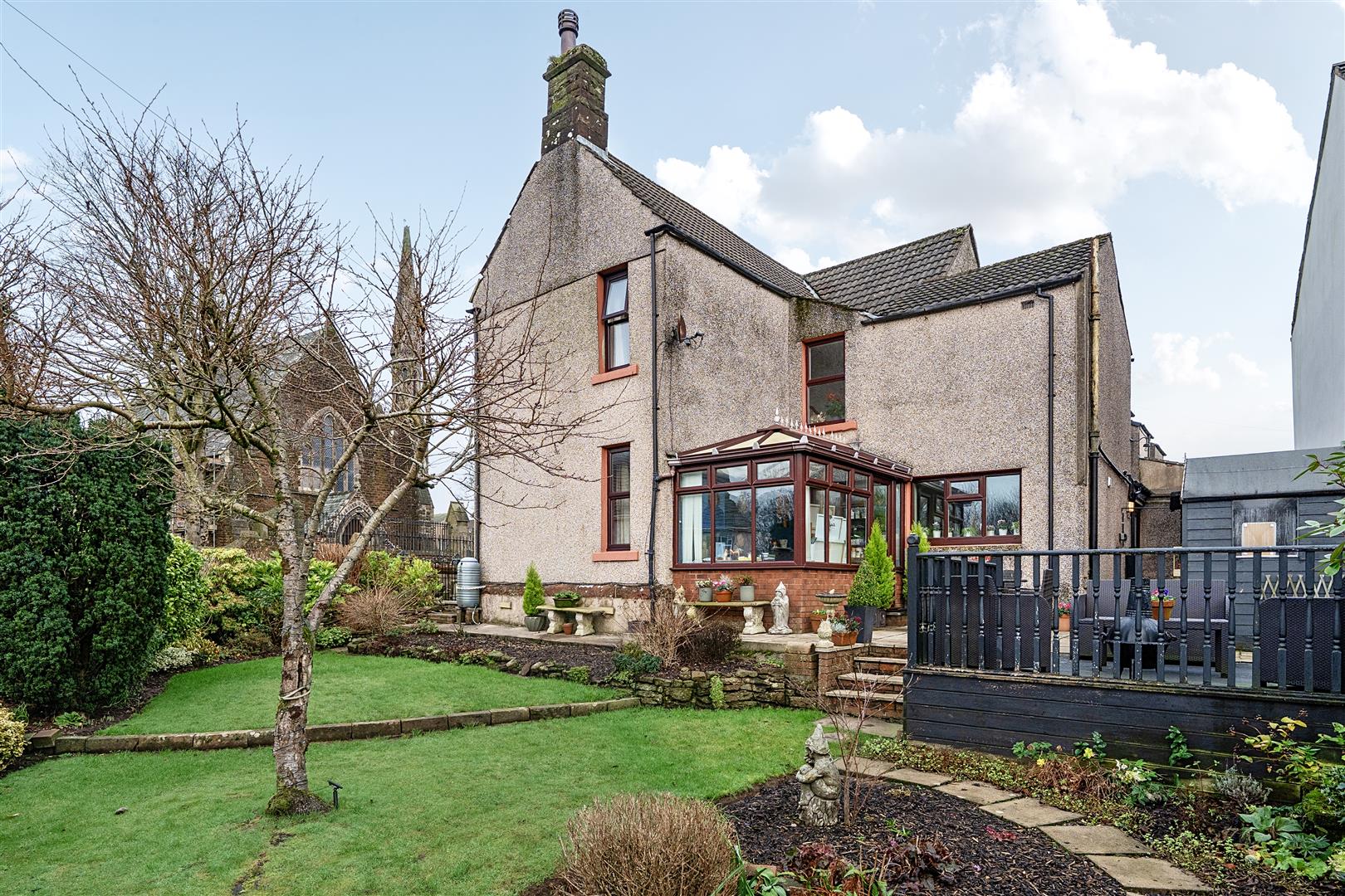 Mostly laid to lawn with decorative trees and shrubbery surrounding, alongside decked and patio area ideal for relaxing and catching those rays. Storage shed with electrics fitted alongside summer house, perfect to use as a hobby room whilst enjoying the garden view.