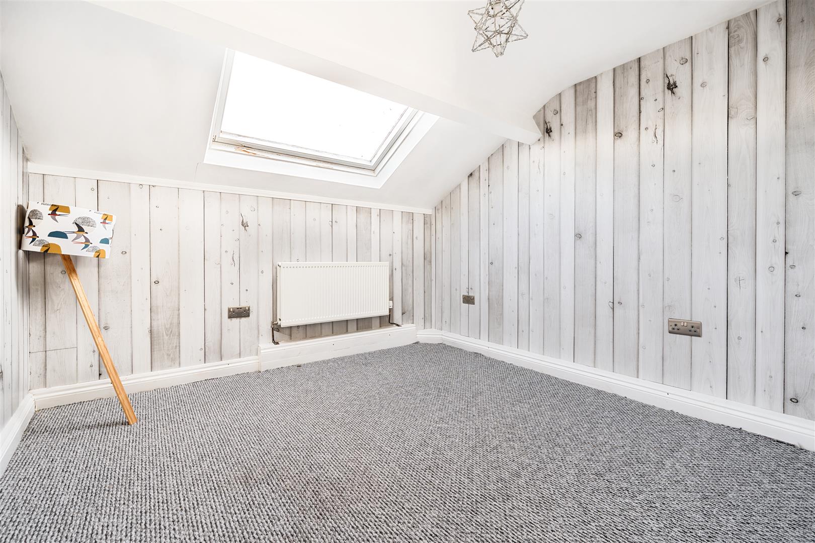 Double bedroom with velux double glazed window and radiator.