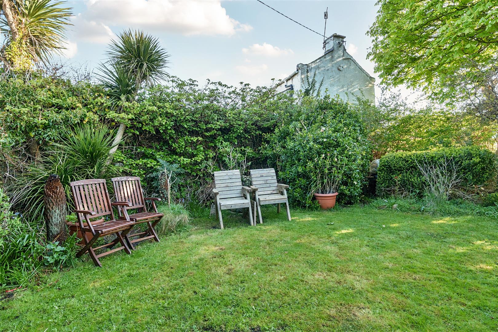 Family sized garden mainly laid to lawn including a range of mature trees and shrubs.