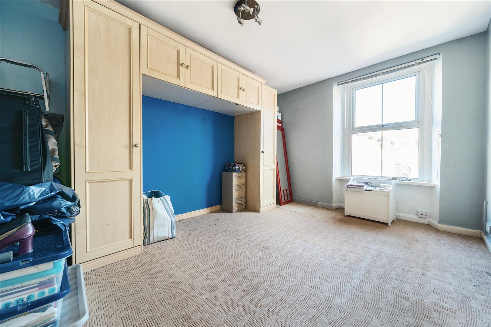Double bedroom with front aspect double glazed window, wall hung gas central heating combi boiler and radiator.