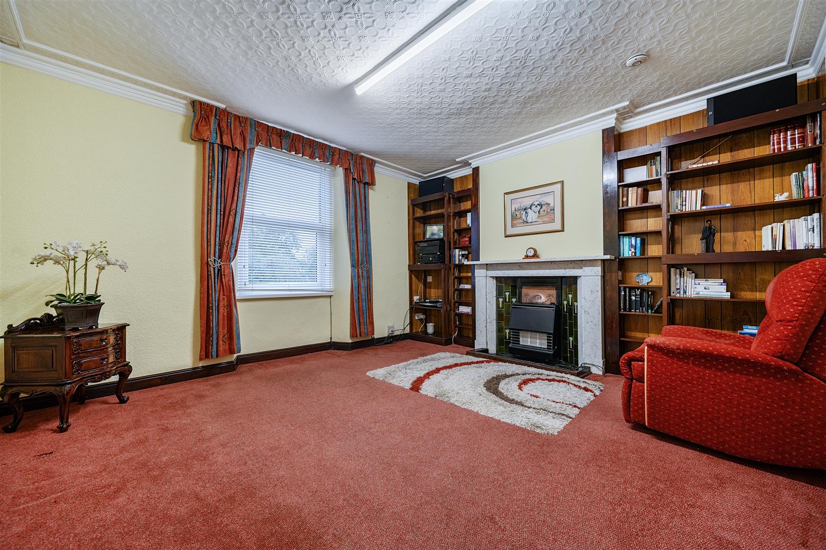 Front aspect double glazed window, radiator, gas fire set within decorative surround.