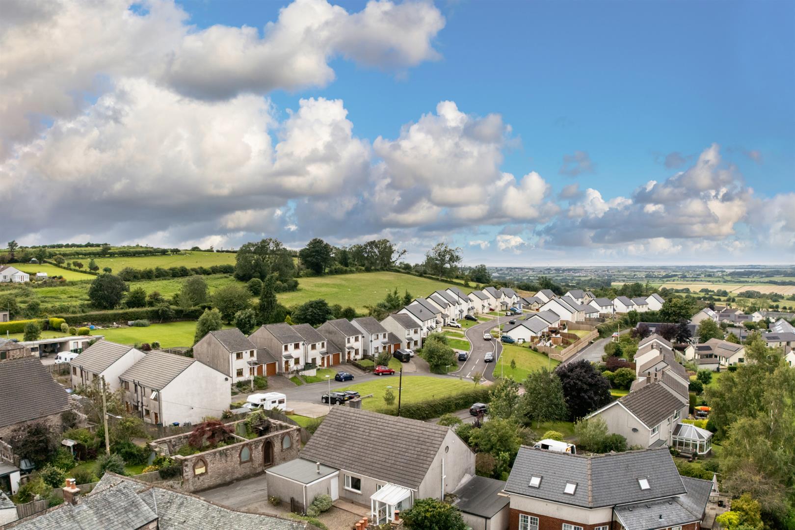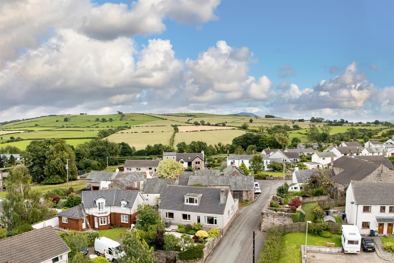 From the front of the property is a delightful outlook over rooftops to the Scottish fells in the distance.